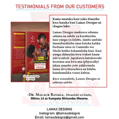 1📝Typesetting/Layout Design (kupangiwa kitabu chako vizuri katika mfumo wa kukiuza Online au kwenda kuPrint uwe na Hardcopy)